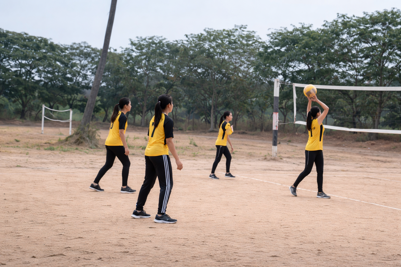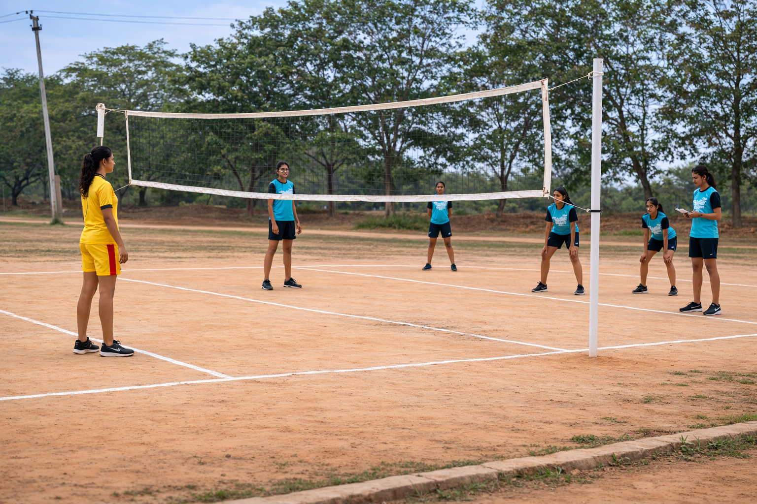Volleyball is a popular and energetic team sport played between two teams on a court separated by a high net. Each team tries to score points by hitting the ball over the net and grounding it on the opponent’s side of the court while preventing the same from happening on their own side. The game requires quick reflexes, coordination, teamwork, and strong communication among players. Volleyball helps improve physical fitness, agility, and concentration. It also encourages sportsmanship, cooperation, and team spirit, making it an enjoyable and widely played sport in schools, colleges, and international competitions.